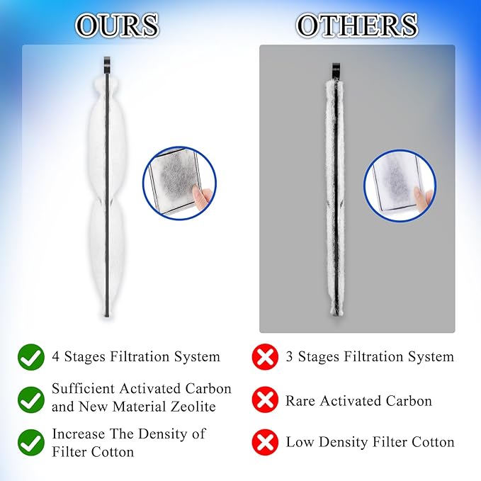 - 【Efficient Water Purification】: Our filter cartridge consists of double high-density cotton, activated carbon, new filter media-Zeolite. Double high-density cotton can filter impurities and debris from the water.3 times activated carbon can effectively absorb 99% of the debris and odors. Zeolite further absorbs heavy metals and balances PH