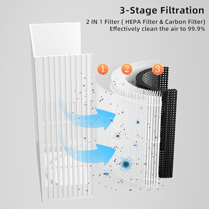 - 【Air Purification】This Air Purifiers adopt super power purification, 360-degree quick effect to improve air quality, strong wind output angle circulation and release fresh air quickly, with HEPA filter( HEPA filter + carbon filter 2 in 1 ) can effectively clean the air to 99%, make your breath more cleaner and more healthy.