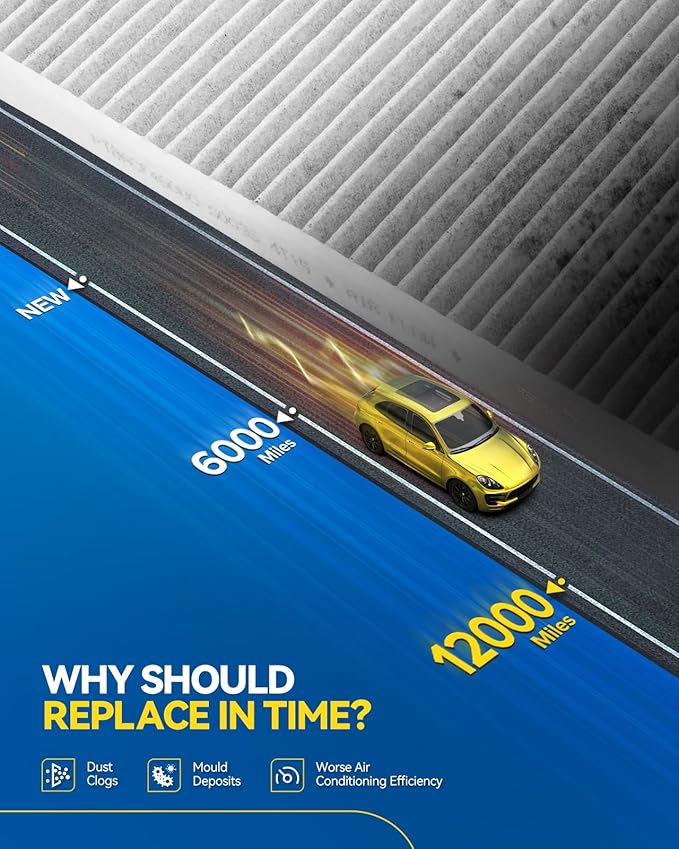 - [Warm Recommend]Replace every 12 months or when it drives to 12,000 miles. If you often drive in heavily polluted areas and muddy roads, it is recommended that you replace them frequently to keep the air fresh in the car