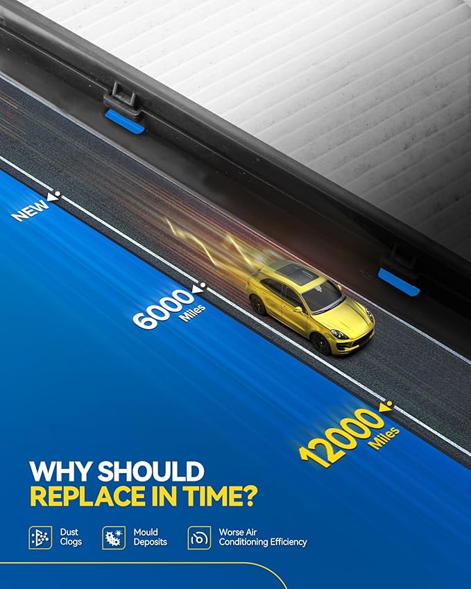 - [Warm Recommend]Replace every 12 months or when it drives to 12,000 miles. If you often drive in heavily polluted areas and muddy roads, it is recommended that you replace them frequently to keep the air fresh in the car