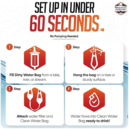 - Ultralight and Compact Design: Designed for adventurers on the go, this lightweight, portable gravity water filter weighs less than a pound, making it ideal for use in your hydration bladder, hanging bag, or backpack. It's a must-have for hikers, hunters, and survivalists.