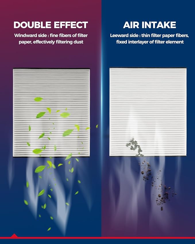 - 2-Layer Activated Carbon: Upgraded version with 2 layers of high-quality coconut shell activated carbon with stronger adsorption capacity, which can effectively remove peculiar smells and nasty odors in the air. Good air permeability, improving the heating and cooling efficiency of the car air conditioner, effectively prevent the musty smell in the car