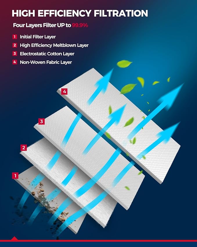 - 2-Layer Activated Carbon: Upgraded version with 2 layers of high-quality coconut shell activated carbon with stronger adsorption capacity, which can effectively remove peculiar smells and nasty odors in the air. Good air permeability, improving the heating and cooling efficiency of the car air conditioner, effectively prevent the musty smell in the car