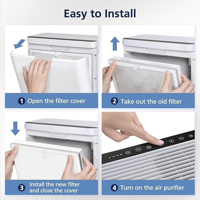 - ๐๐๐ฌ๐ฒ ๐๐ง๐ฌ๐ญ๐๐ฅ๐ฅ๐๐ญ๐ข๐จ๐ง - No tools are required. These H7124 filter replacement for GoveeLife smart air purifier can be easily installed in 4 steps: 1.Open the filter cover; 2.Take out the old filter; 3. install the new filter and close the filter cover; 4.Turn on the air purifier; keeping your H7124 air purifier running smoothly without any hassle.