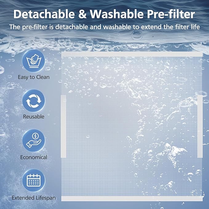 - ๐๐๐ญ๐๐๐ก๐๐๐ฅ๐ & ๐๐๐ฌ๐ก๐๐๐ฅ๐ ๐๐ซ๐-๐๐ข๐ฅ๐ญ๐๐ซ - The Nylon Pre-filter for GoveeLife H7124 is detachable and washable. Regular maintenance and cleaning of the pre-filter can significantly extend the lifespan of the HEPA filter, ensuring your air purifier stays efficient for longer.