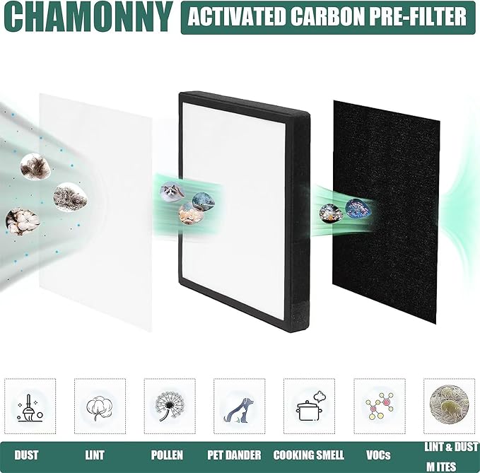 - REDUCES ODORS: The activated carbon pre-filter helps to reduce unwanted odors, smoke & smog, harmful toxins, VOCs, paint fumes, chemical pollutants and more