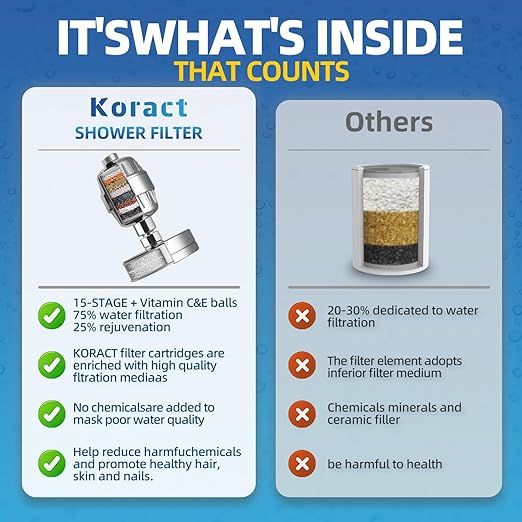 - EASY INSTALLATION: Universally design, attaches to any 1/2 inch pipe, with no tools needed. You can install Koract filtered shower head yourself in less than 1 min