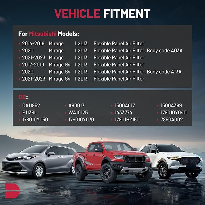 - 【COMPATIBILITY】Compatible with Mitsubishi Mirage 2014-2023 L3 1.2L; Compatible with Mitsubishi Mirage G4 2017-2023 L3 1.2L.