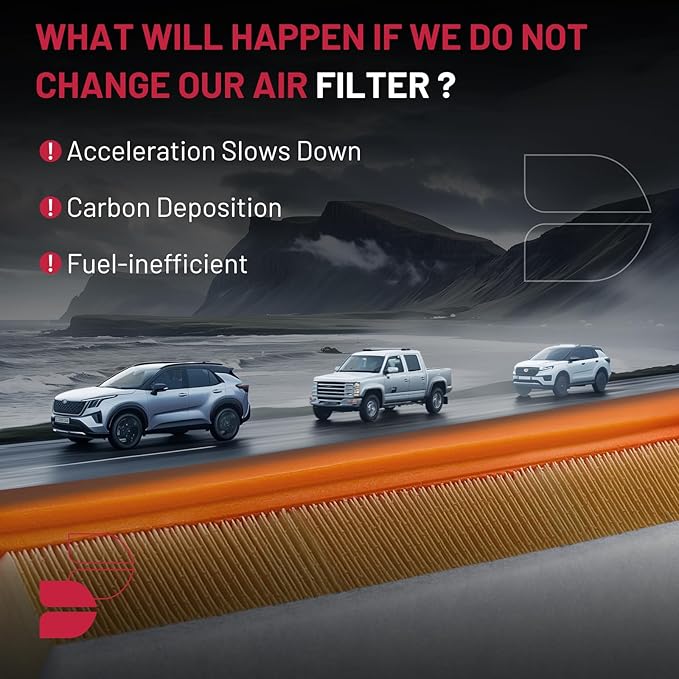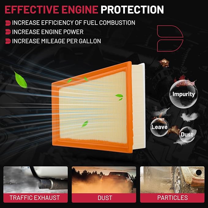 - 【SUGGESTION】To ensure that the vehicle air filter provides your engine with clean air, recommended replacement every 12 months, 12,000 miles or as specified by the vehicle manufacturer.