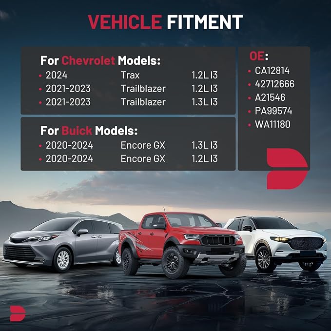- 【COMPATIBILITY】Compatible with Buick Encore GX 2020-2024 L3 1.2L/1.3L; Compatible with Chevrolet Trailblazer 2021-2023 L3 1.2L/1.3L, Trax 2024 L3 1.2L.