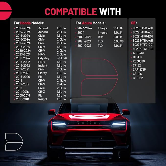 - 【Fitment】Compatible with Honda Models: 2023-2024 Accord, 2016-2024 Civic, 2017-2024 CR-V, 2016-2024 HR-V, 2018-2024 Odyssey, 2010-2014 & 2019-2022 Insight, 2018-2021 Clarity, 2009-2020 Fit, 2011-2016 CR-Z; Compatible with Acura Models: 2023-2024 Integra, 2019-2024 RDX, 2021-2024 TLX