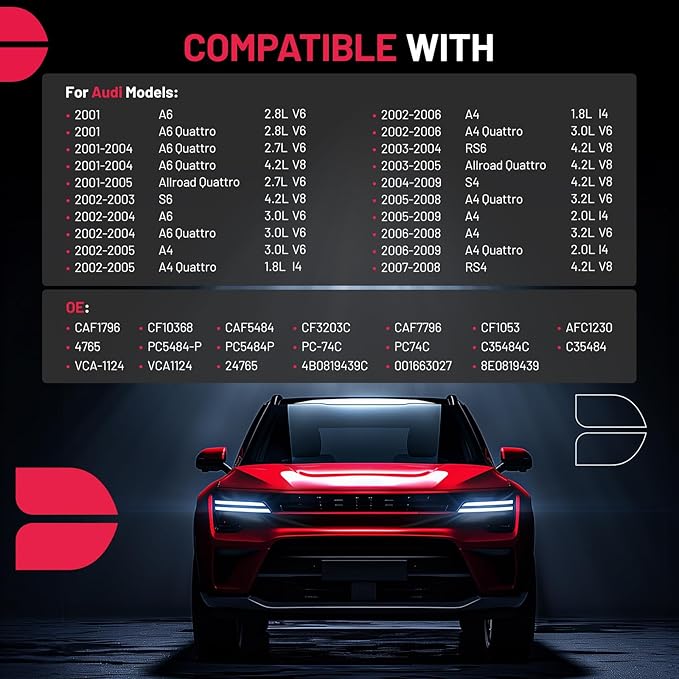 - 【Compatible Vehicles】Compatible with Audi Models: 2002-2009 A4/ A4 Quattro, 2001-2004 A6/ A6 Quattro, 2001-2005 Allroad Quattro, 2007-2008 RS4, 2003-2004 RS6, 2004-2009 S4, 2002-2003 S6