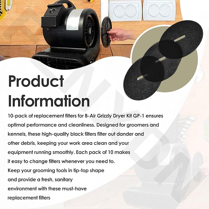 - Replacement Filters: This 10-pack provides replacement filters for B-Air Grizzly Dryer Kit GP-1, ideal for pet groomers and kennels
