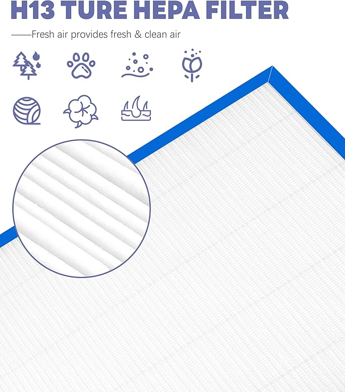 - Multi-Stage Filtration Filter: AP-15 filter with H13 True HEPA filter and activated carbon filter, H13 HEPA capture 99.97% of airborne dusts PM2.5 down to 0.3 microns in size, brings you better life