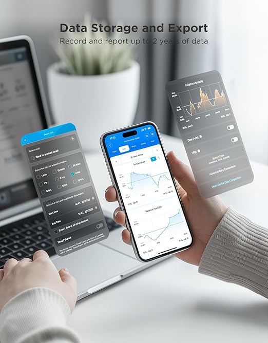 - Bluetooth Remote Monitoring: Paired with our temperature and humidity sensor, the Bluetooth range expands to 262ft. Enabling intelligent remote monitoring and quick to access data from any corner of your home. App control offers a Bluetooth remote alarm.