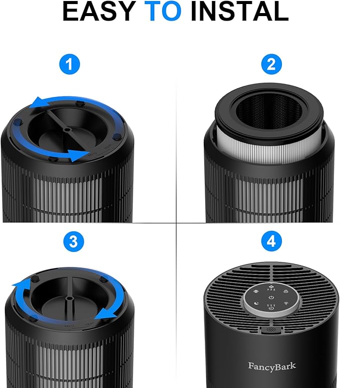 - 360°Efficient Purification - FancyBark air purifier adopts 360° air suction design and built-in H14 true HEPA 3-in-1 filter, which can quickly catch odors, smoke, dust, pollen, dander, and output fresh and healthy air, covering an area of up to 1000 Ft², creating a healthy environment for your family