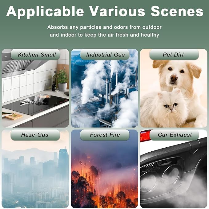 - 【3-in-1 FILTER】: 3-in-1 System Activated Carbon Filter. Works 95.99% of airborne particles as small as 0.3 microns in size to attach, protecting your home from pet hair, pet dander, and odors