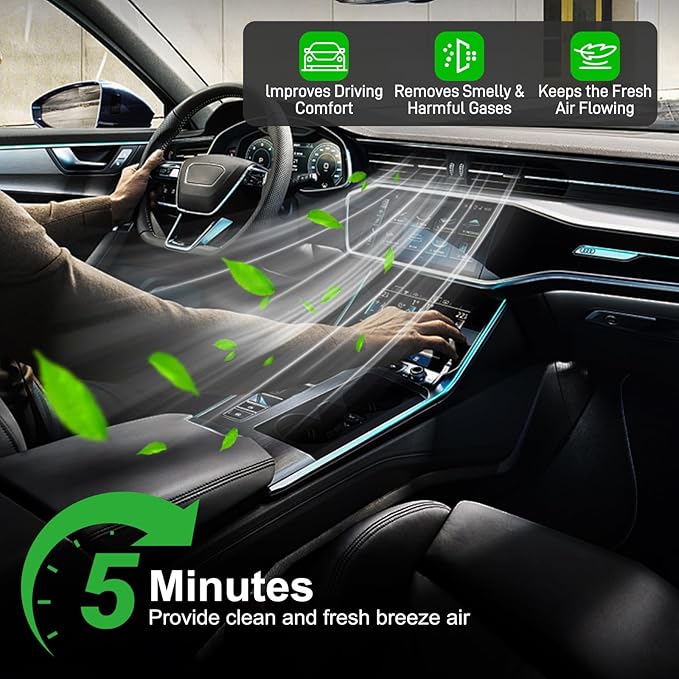 - Triple filtration technology: DacallAuto air filter adopts a 4-layer filtration structure, coconut shell activated carbon odor and a combination of microfiber and HEPA cloth, which not only effectively absorbs harmful gases and unpleasant odors, but also isolates more than 99% of dust particles, providing comprehensive protection and enjoying fresh breathing