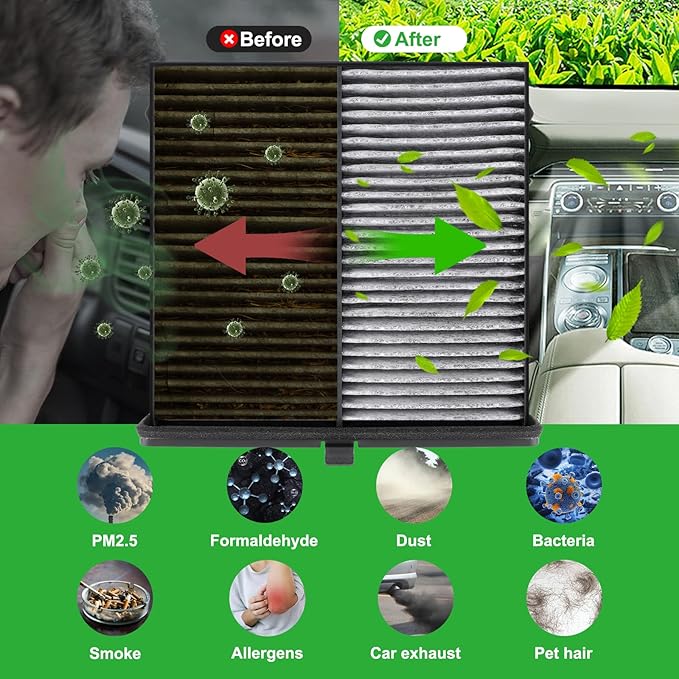 - Improved HVAC Efficiency: It's advised to change your cabin air filter annually or after every 12,000 miles to protect your health and enhances HVAC performance. Note: Please check the cabin air filter's fitment and size to make sure if it fits your car