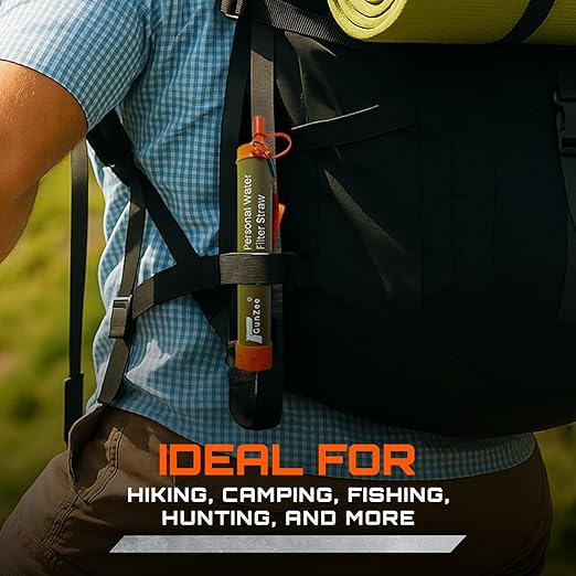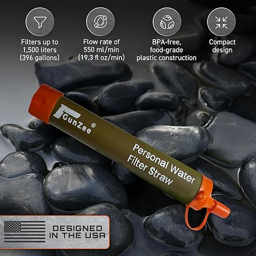 GunZee Personal Water Filter Straw, Reusable Straws for Drinking Clean, Filtered Water, Portable & Lightweight, Ideal for Camping, Hiking, Fishing, and Backpacking, Survival Gear and Supplies, 4-Pack