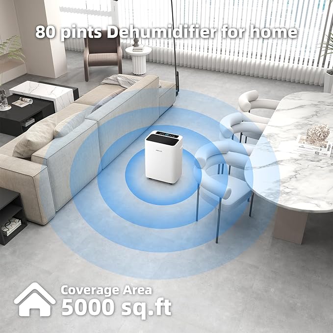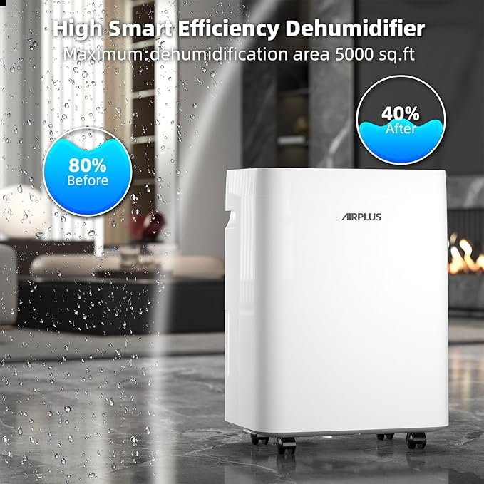 AIRPLUS 5000 Sq.Ft 80 Pint Dehumidifier for Basements,1.3gallon Water Tank,Smart Dehumidifiers for Home,Dehumidifier with Drain Hose for garage,basement,bathroom