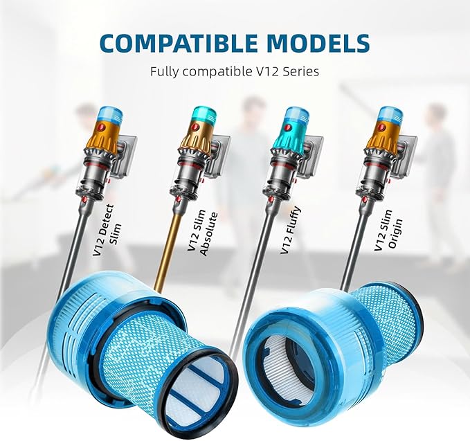 - ⚠️𝑵𝒐𝒕 𝑪𝒐𝒎𝒑𝒂𝒕𝒊𝒃𝒍𝒆: Bee Filter Premium V12 replacement filters are NOT compatible with Dyson V15, Dyson V15 Detect, V15 Detect Absolute, V15 Detect+, Dyson V15 Filter, Dyson V15 Filter Replacement, Dyson V11 Filter, Dyson V15s Detect Submarine, Dyson V11 Animal, Dyson V11 Torque Drive, Dyson V11, Dyson V11 Torque Drive Filter, Dyson V11 Complete, Dyson V11 Extra, Dyson V11 Absolute, Dyson V10 Filter, Dyson V10 Animal Filter, Dyson Gen5 Series, and SV19 Omni-glide+ vacuums. Please verify your accessory model and size before ordering. For more information, feel free to contact us or refer to the product detail images.