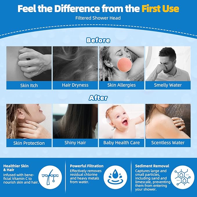 - Excellent 20 Stages Shower Head Filter: Experience the ultimate water purification with the Hibbent advanced shower filter, featuring 20-stage water filtration, redox media, calcium sulfite, activated carbon, and ceramic beads. This innovative filter effectively eliminates odours, balances pH levels, and infuses beneficial minerals into your skin, nails, and hair. Not only does it act as a moisturizer and purifier, but it also provides an unparalleled sensation for sensitive skin