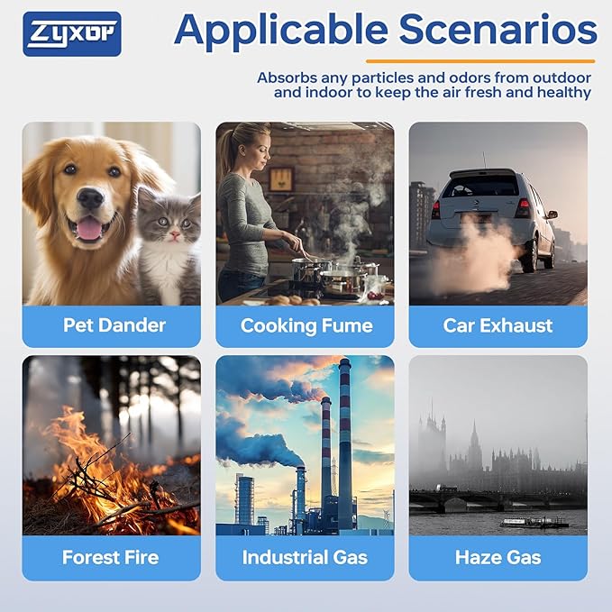 - [H13 Filter & Activated Carbon Filter] The H13 True filter reduces 99.97% of particles down to 0.1 microns, Upgraded high-efficiency activated carbon filter efficiently absorbs household odors and fumes from pets, cooking, smoke, wildfire, Pre-filter could attach large particles such as dust, lint, fibers, hair, and helping to extend the life of the filter