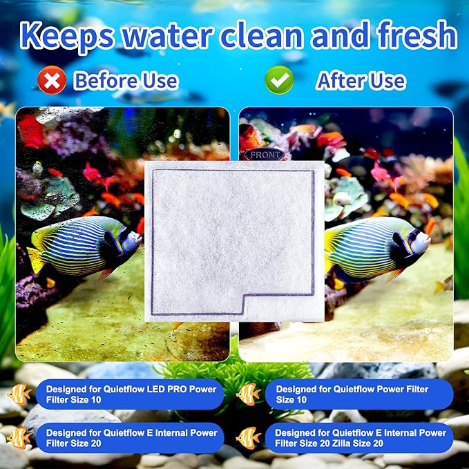 - 【Further cleaning】The outer layer is made of soft cotton and high-density fibers. Multi layer cotton can collect debris or waste without sucking fish, keeping the water clear and fresh.