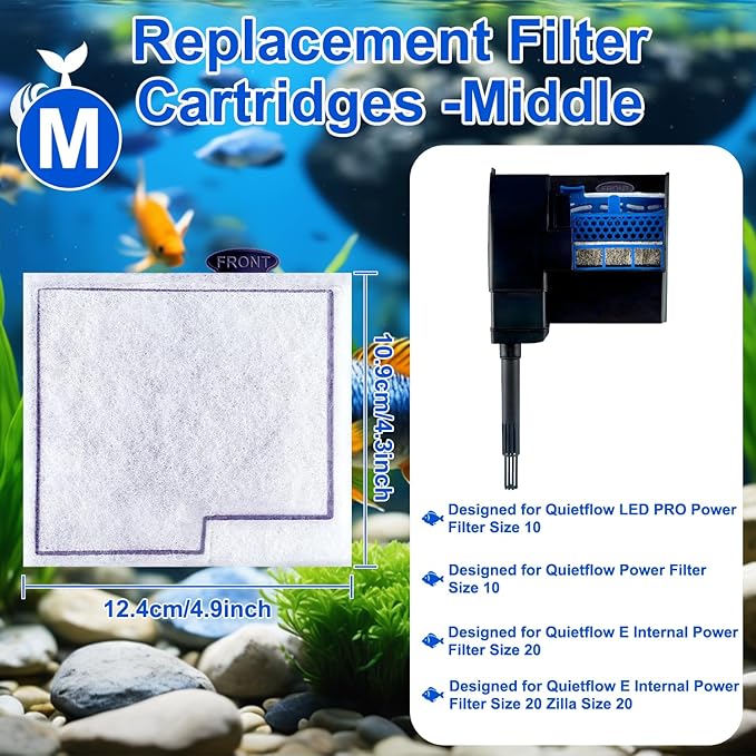 - 【Package Inlcuded】 10 Pack Medium Ideal replacement aquarium filters cartridges element, Size: 4.9in *4.3in ,Fit for Aqueon QuietFlow LED PRO Power Filter Size 10 & E Internal Power Filter Size 20 .