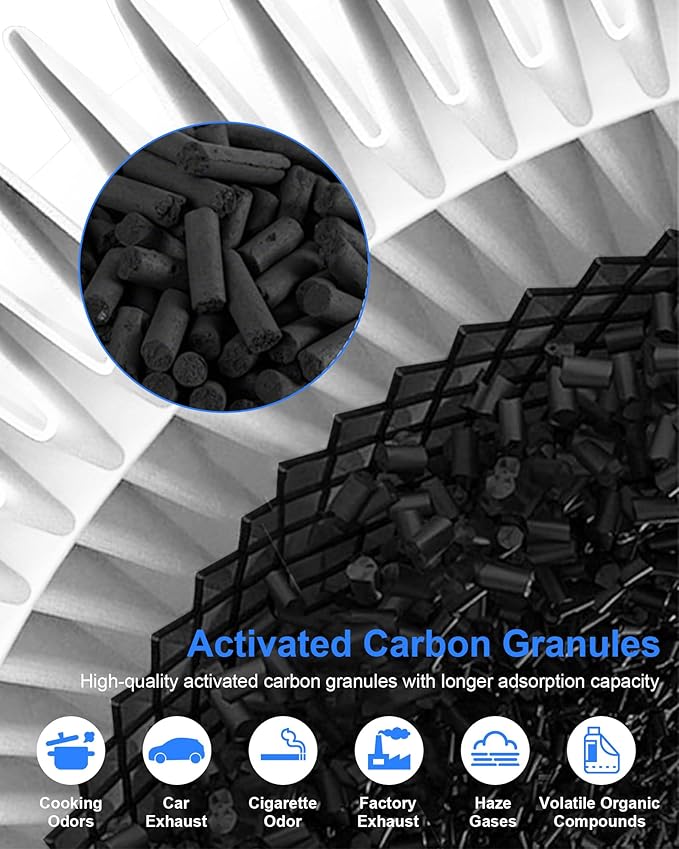 - 【High Efficiency Filtration System】Our high efficiency air filter made of high quality fine non-woven fabric and activated carbon cotton with low density structure, combined with advanced filtration technology to extend the service life, combining advanced filtration technology with energy efficiency to provide you with more efficient filtration.