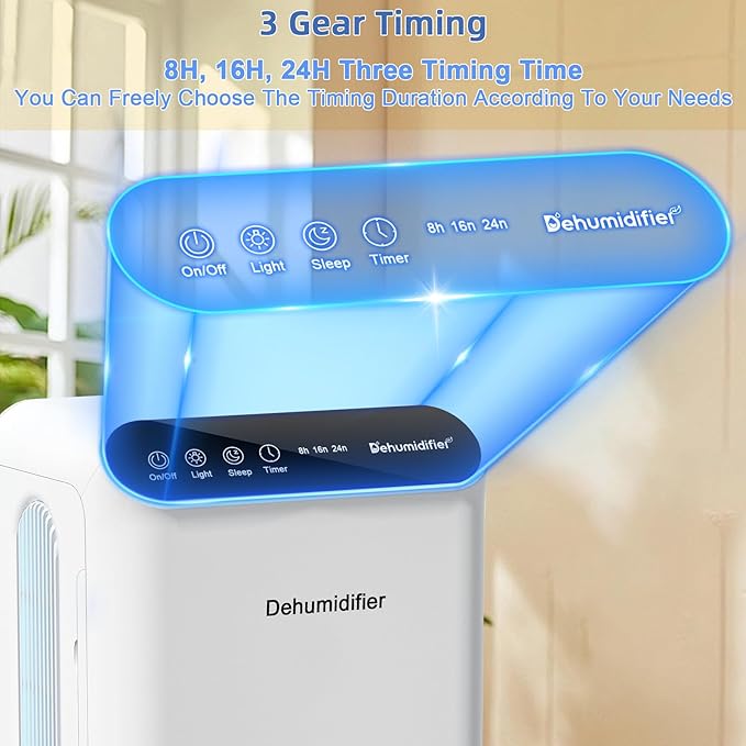 - 【Designed with Safety in Mind】Safety is a top priority for LOMMOL. That's why our dehumidifier for home is features an auto-off function.The dehumidifier will automatically shutdown and emit a red light once the tank is full of water, which is a reminder that you need to empty and clean the tank.The dehumidifier has a simple cleaning process that makes it easy to keep it running efficiently. 8H/16H/24H Timer that allows you to run the device on a schedule