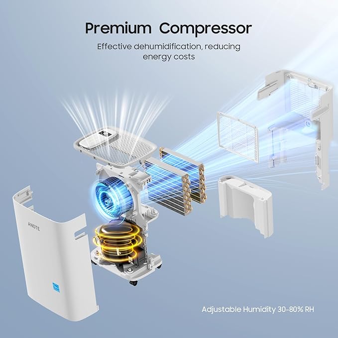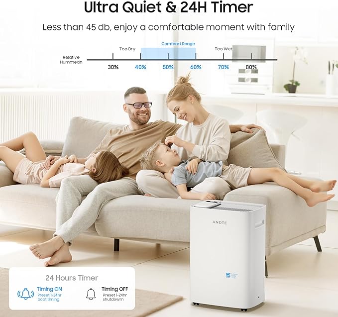 - Efficient Energy Star Dehumidifier: ANDTE home dehumidifier recognized as ENERGY STAR deliver cutting edge energy efficiency along with the latest in technological innovation. It consumes significantly less electricity and better performance and help you reduce your electricity bill by up to 45% compared to non-certified or normal energy star models. The ultimate example of energy efficiency and environmental friendliness.