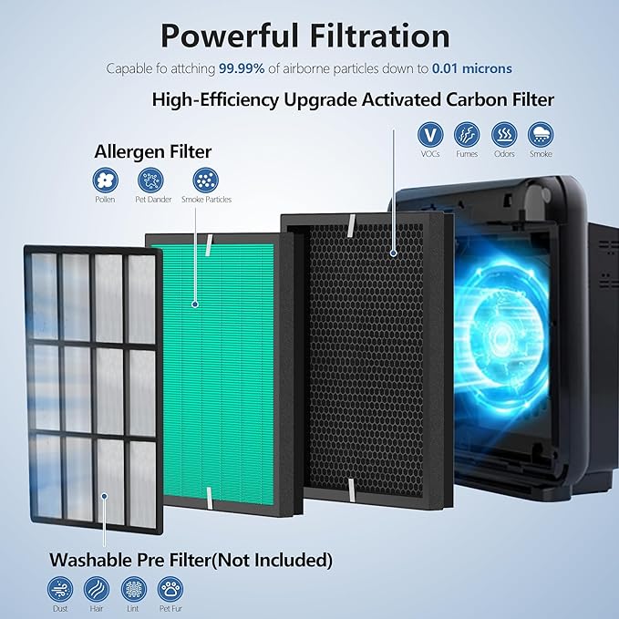 - Enhanced Filtration: The ap-1512hh filter replacement for coway combined with high efficiency filtration system, The True HEPA filter are capable of attaching 99.99% of airborne particles as small as 0.01 microns,the upgraded enhanced activated carbon filter helps you solve the problem of unpleasant odors and gases.