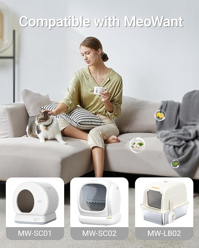 - EFFECTIVE DEODORIZING: Cat litter deodorizer gel compatible with MeoWant self-cleaning cat litter box. Litter box odor eliminator has a 85% ammonia degradation rate and effectively removes cat feces and urine odors from the litter box, ensuring a fresh, clean living space for you and your pet. The litter box deodorizer has a light floral scent and is light and not overpowering, making it the ideal cat litter deodorizing gel for MW-SC01/MW-SC02/LB02 self-cleaning litter boxes