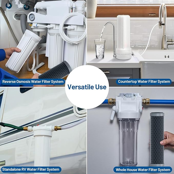 - Compatible 10" x 2.5" Carbon Water Filter Cartridge: Compatible with Culligάn SCWH-5; AO Smíth AO-WH-PRE-RCP2; American Plumbér W5CIP (155002-52); Whírlpool WHKF-WHWC /WHCF-WHWC; GE FXWTC /FX12P; Dupónt WFPFC8002 /WFPFC9001 /DWC30001; Pənték CCBC-10 (155713-43) /CB1-10; Wάtts F109009 /PWCB10P /WCBCS975-RV /MAXETW-975 /WCBCS-975RV; Hydróinx CB-25-1001; F1lterte 3WH-STDCW-F02; APCE 23-CAB10 /FI-ES-CAB10; OMINFilter TO1 /TO1-DS /TO1-SS; 1-Spring FC15; Neó-Pure CIC-2510; Spíro-Pure SP-EP-10; Liquάtec CB-250-975-01, etc.