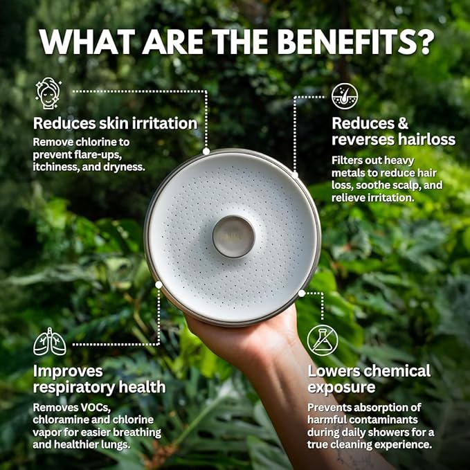 - SUPPORTS BETTER RESPIRATORY HEALTH: Removes chlorine and other volatile compounds that can vaporize in hot showers and irritate lungs, helping you breathe easier and reduce exposure to airborne toxins.