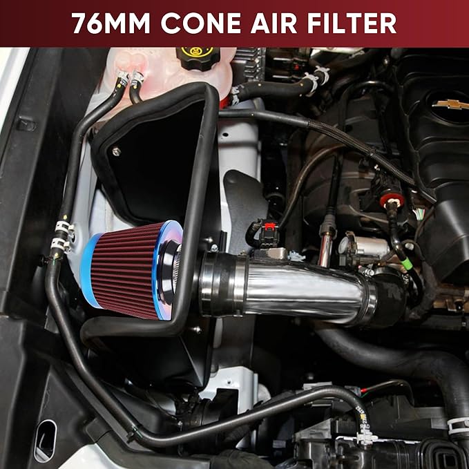 - [Size] The high-flow cone air filter features a 3-inch/76mm inlet. For detailed dimensions, please refer to the provided picture