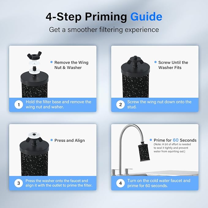 - [Nearly Double the Lifespan] Each pair of upgraded composite filters can provide up to 10,000 gallons of fresh water, which is 4,000 gallons more than the standard 6,000-gallon lifespan of most filters on the market. This allows one household to reduce up to 80,000 plastic bottles (500ml) within 3 years, contributing to a more sustainable and eco-friendly lifestyle. Note: TDS levels do not fully reflect water quality, and our filters are not designed to reduce TDS levels.
