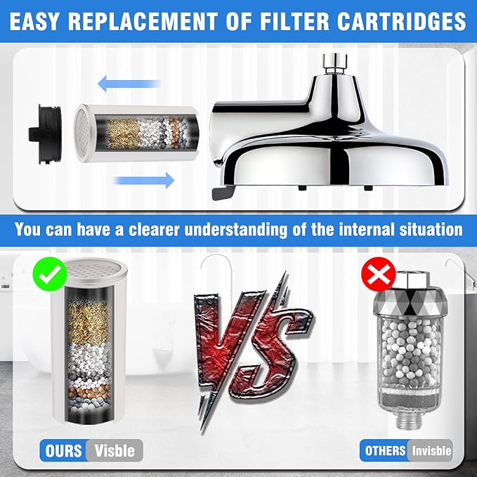 - DURABLE STYLISH DESIGN: Crafted from high-quality materials, this filtered shower head combines durability with a sleek, modern design that enhances the look of your bathroom while providing long-lasting performance.