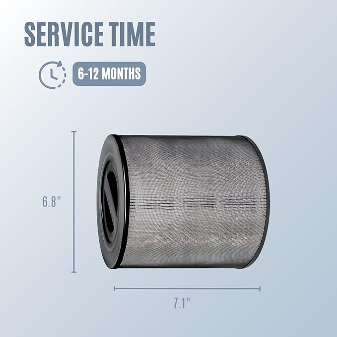 - 1 Replacement Filter included. Filter dimension: 6.8"D x 7.1"W x 6.8"H