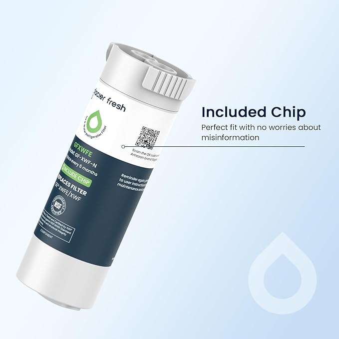 - GLACIER FRESH Replacement for XWFE Refrigerator Water Filter (with CHIP) Statement: Tested & verified by independent laboratory testing, it can remove chemicals and contaminants from your drinking water, resulting in clean tasting and clean smelling water.