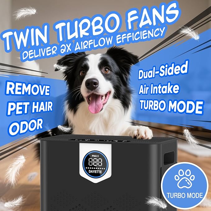 - 【PROLONG FILTER LIFE AND LOWER REPLACEMENT COSTS】First Line of Defense: The removable and washable fine-mesh pre-filter effectively captures pet hair, dander, fibers, and larger debris, significantly reducing the frequency of replacing the True HEPA14 filter. Simple Cleaning: Just wash or vacuum the pre-filter to save over $30 per cleaning and prolong the life of your main filter.Healthy Home: DAYETTE air purifier ensures fresh, clean air while keeping your filter replacement costs low