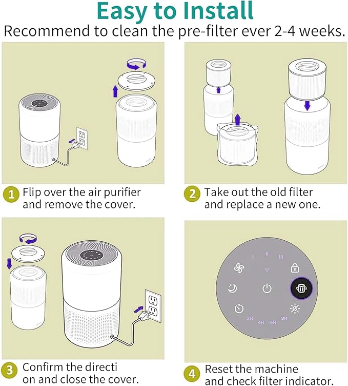 - Installation is Easy:No tools are required, it is recommended to replace air filters every 6 months,for optimal performance (depending on your usage and environment) and higher filtration performance over the long term