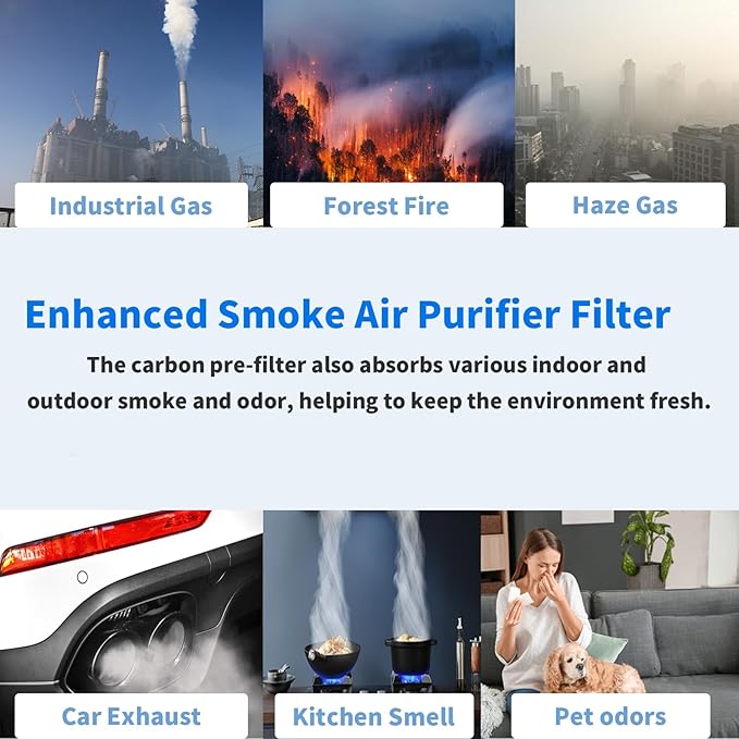 - 3-in-1 Filter:Unlike other filters, our green Core 300 replacement filter's 3-stage filtration system focuses on helping to filter out haze-borne air toxins, absorbing and neutralising compounds such as formaldehyde, benzene, ammonia and hydrogen sulphide, effectively reducing 99.97% of airborne matter down to 0.03 microns, and breaking down unpleasant household odours and wildfire gases. Ensuring you can now enjoy fresh air at home without leaving your home