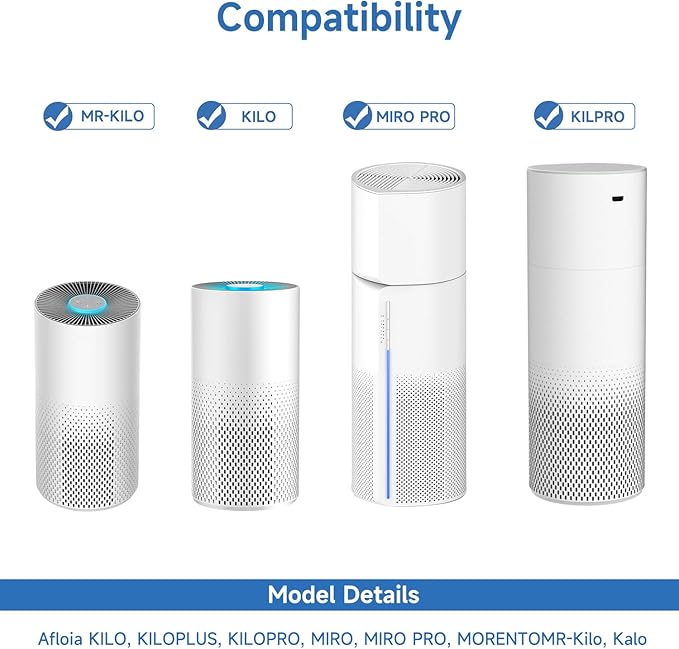 - ✅ Compatibility: This kilo replacement filter is only compatible with Afloia KILO, KILO PLUS, KILO PRO, MIRO, MIRO PRO Air Purifier and for MORENTO MR-Kilo, Kalo Air Purifier. The product model can be confirmed at the bottom of the machine
