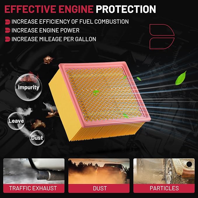 - 【SUGGESTION】To ensure that the vehicle air filter provides your engine with clean air, recommended replacement every 12 months, 12,000 miles or as specified by the vehicle manufacturer.