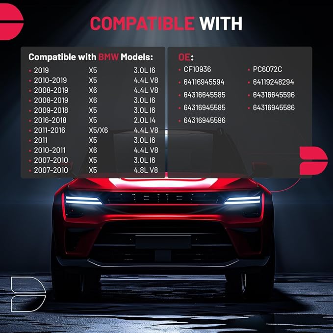- [Vehicle Fitment] Compatible with BMW Models: 2016-2018 X5 2.0L l4, 2007-2019 X5 3.0L l6, 2010-2019 X5 4.4L V8, 2007-2010 X5 4.8L V8, 2008-2019 X6/X6 3.0L l6/ 4.4L V8