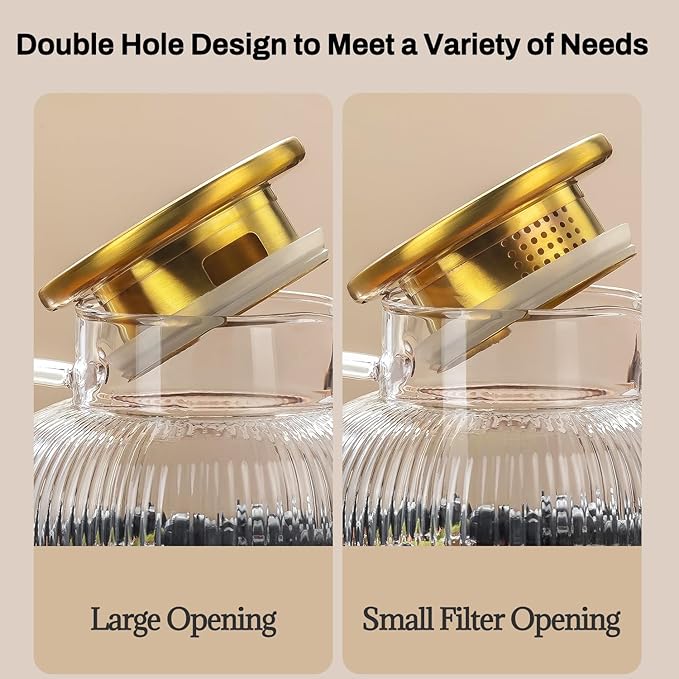 - 【100% STAINLESS STEEL LID WITH TWO OPENINGS】The lid is made of 100% stainless steel, so whether you use it for three or five years, you don't have to worry about the rust of the lid and the lid has two openings, which can be turned to pour water or the other side to filter beverages. The soft silicone seal keeps the lid firmly on the lid to prevent leakage.