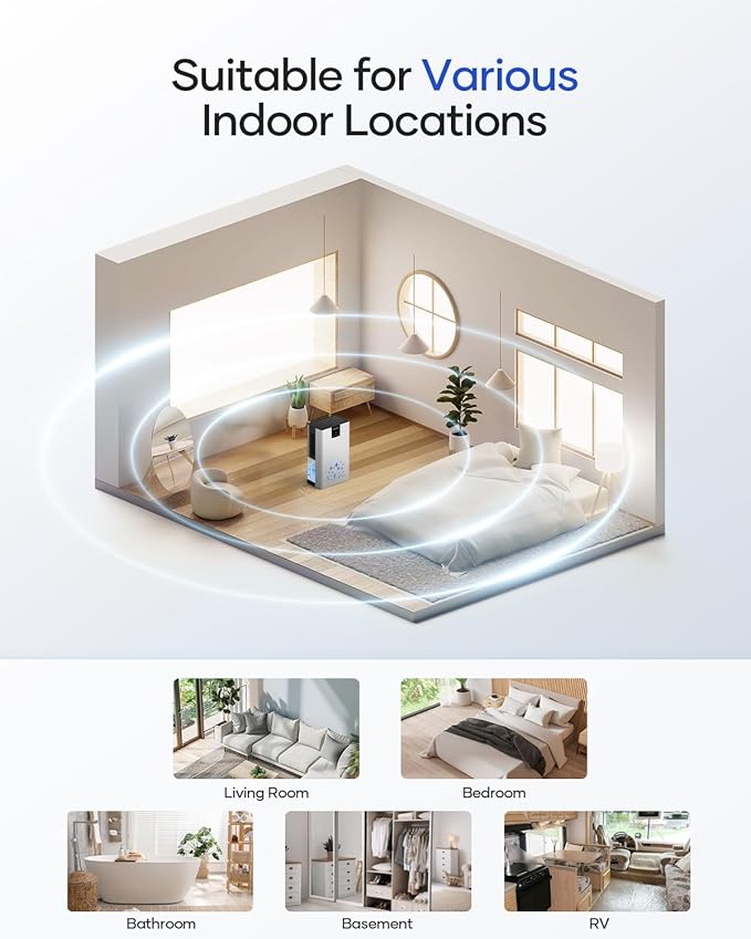 - WHISPER-QUIET DUAL MODES FOR EVERY NEED: Switch between Powerful Mode (30-40 dB) for rapid dehumidification and Night Mode (20 dB), one of the quietest dehumidifiers on the market. Whether you need a bedroom dehumidifier for peaceful sleep or a portable dehumidifier for RV adventures, it adapts seamlessly without disrupting your routine